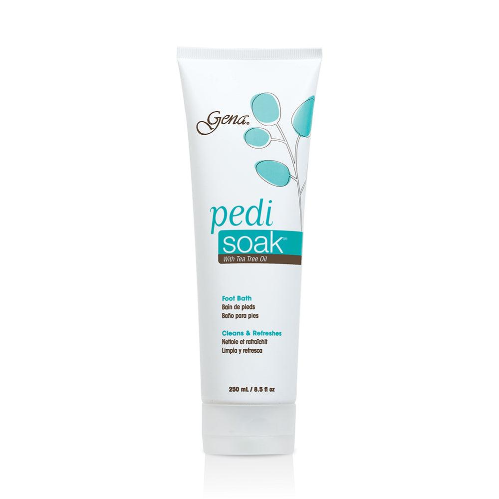 Soak, scrub and soften your way to flawless feet with Gena's professional pedicure line - a complete three-step system to achieve the perfect pedicure. Gena Pedi Soak is a concentrated liquid foot soak that cleanses and refreshes, enriched with Tea Tree Oil and botanical extracts to soften skin.