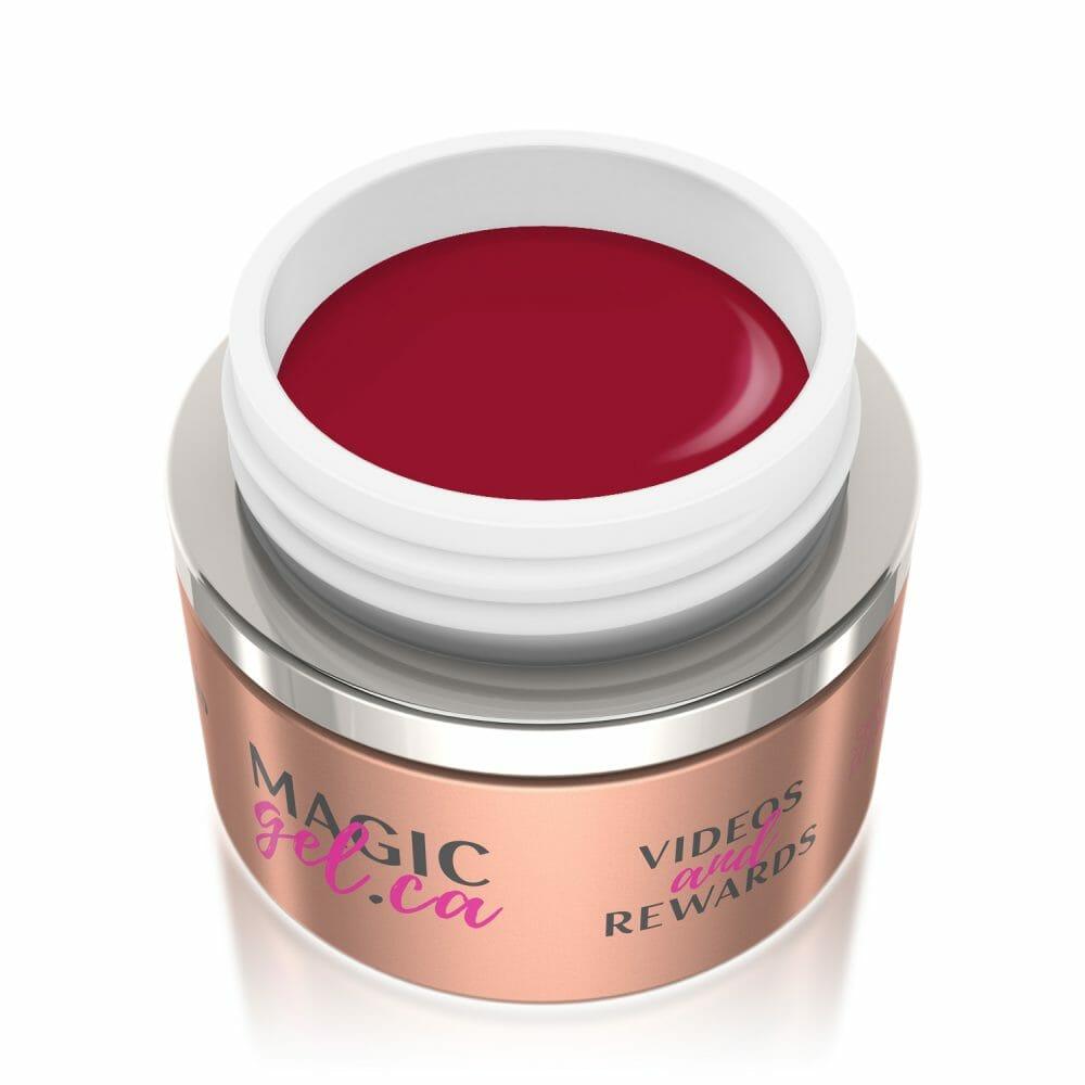 This deep cherry red features noticeable purple undertones making the colour feminine but strong.