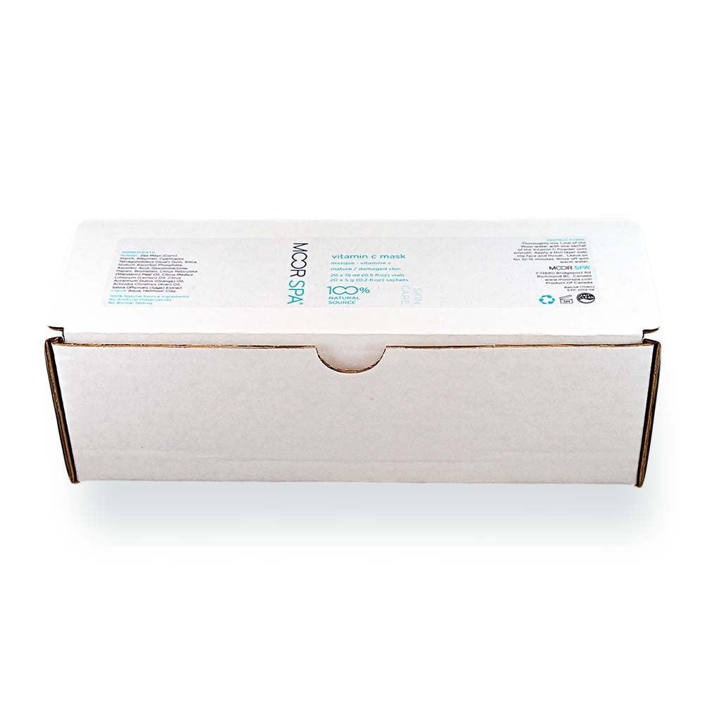 Instructions: Mix one vial of the Moor water with one sachet of the Vitamin C Powder until smooth and apply a thin layer onto the face and neck. Leave on for 10-15 minutes. For removal, rinse off with warm towels.